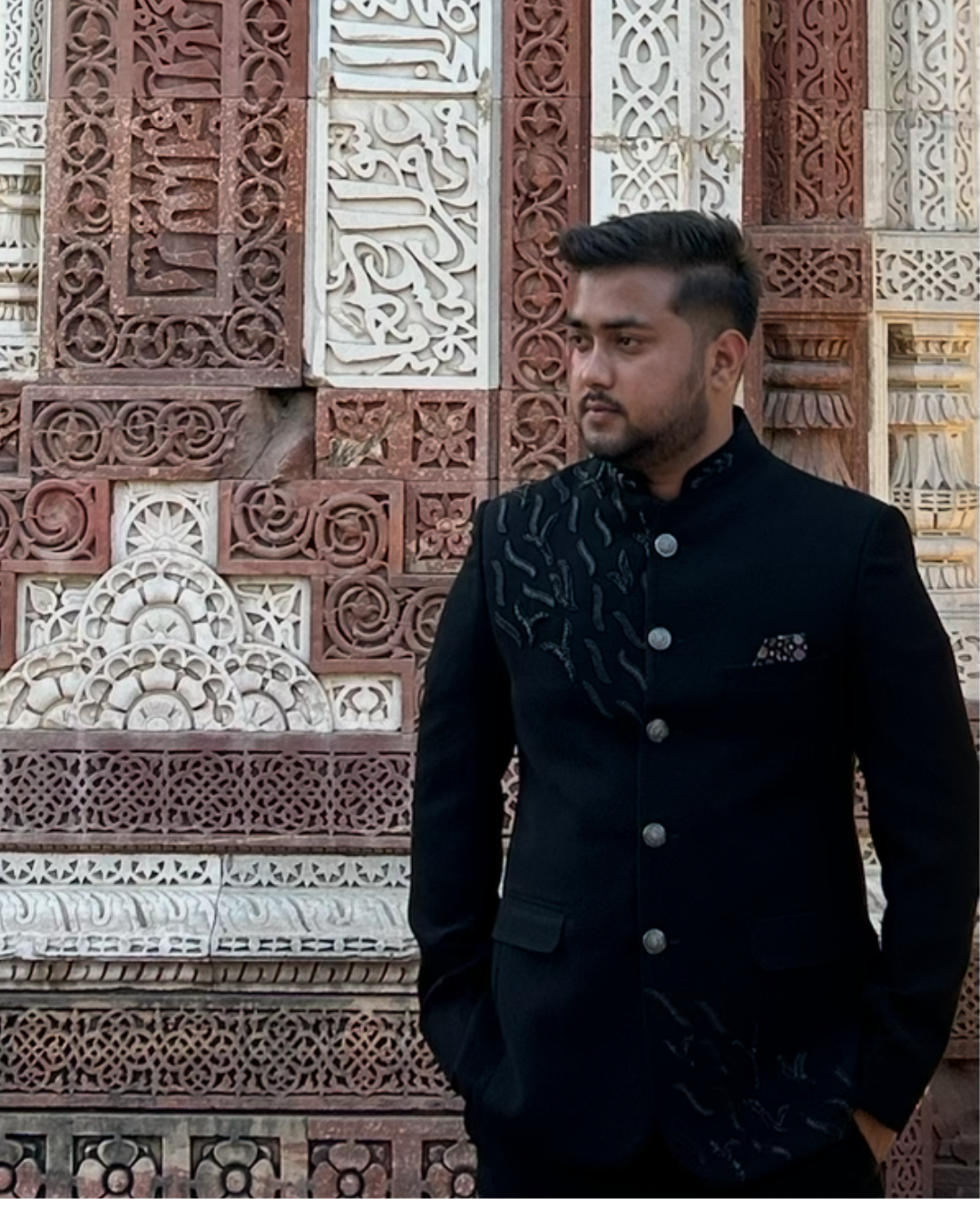 "Make an unforgettable impression in this expertly tailored bandhgala. Rich in detail, regal in aura, perfect for any grand occasion."
